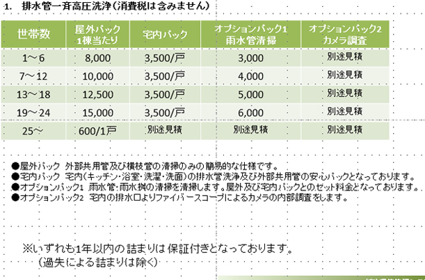 排水管高圧洗浄料金体系